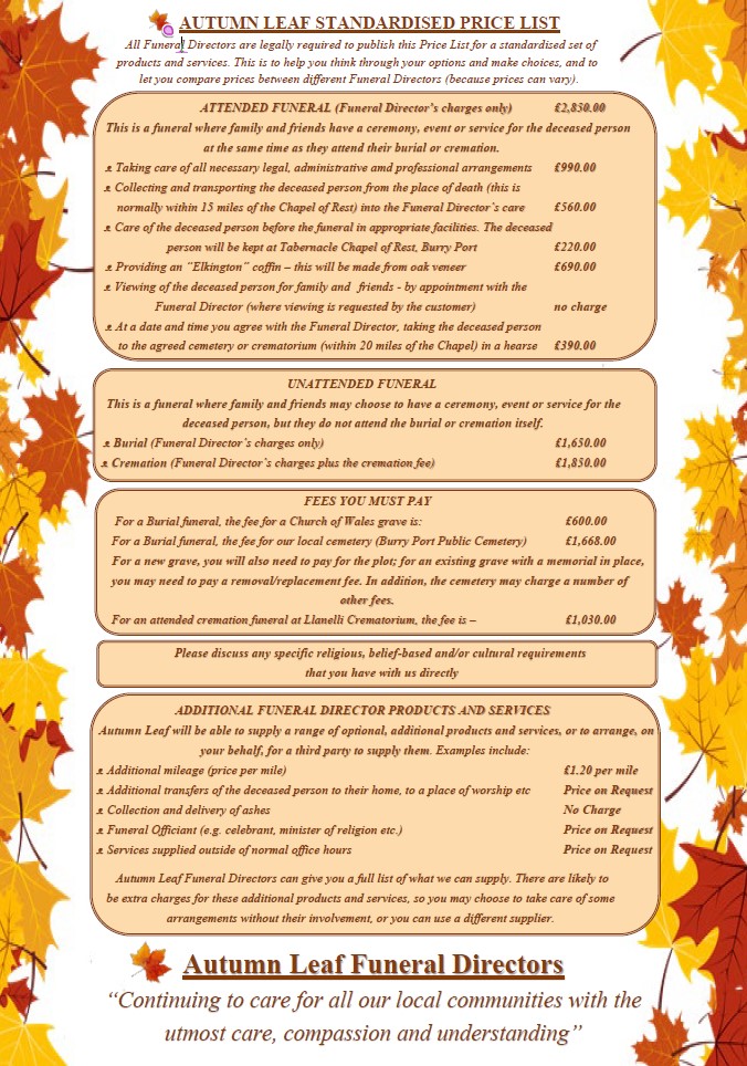 The Old Vestry, Tabernacle, Sea View Terrace, Burry Port, SA16 0EN - Price List